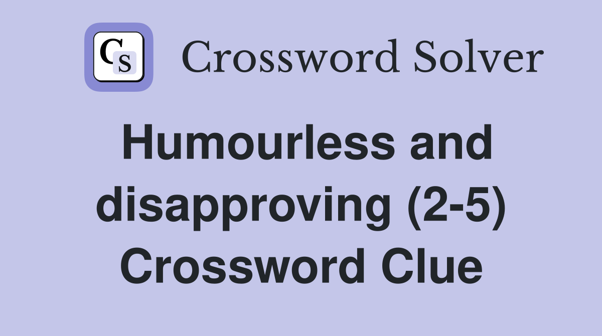 Humourless and disapproving (2 5) Crossword Clue Answers Crossword