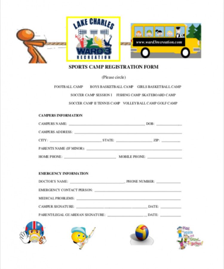 Free Camp Registration Form Template Printable Word Searches
