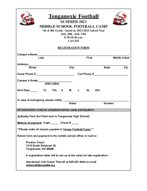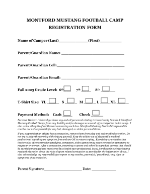 Football Camp Registration Form Template