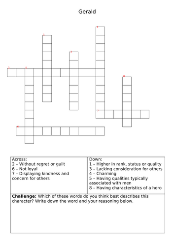 An Inspector Calls Crossword Teaching Resources
