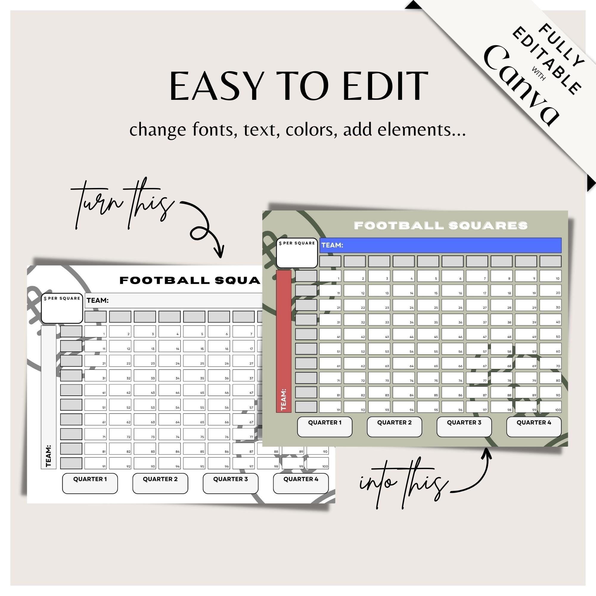 Editable Football 100 Squares Template Customizable Fundraising Grid