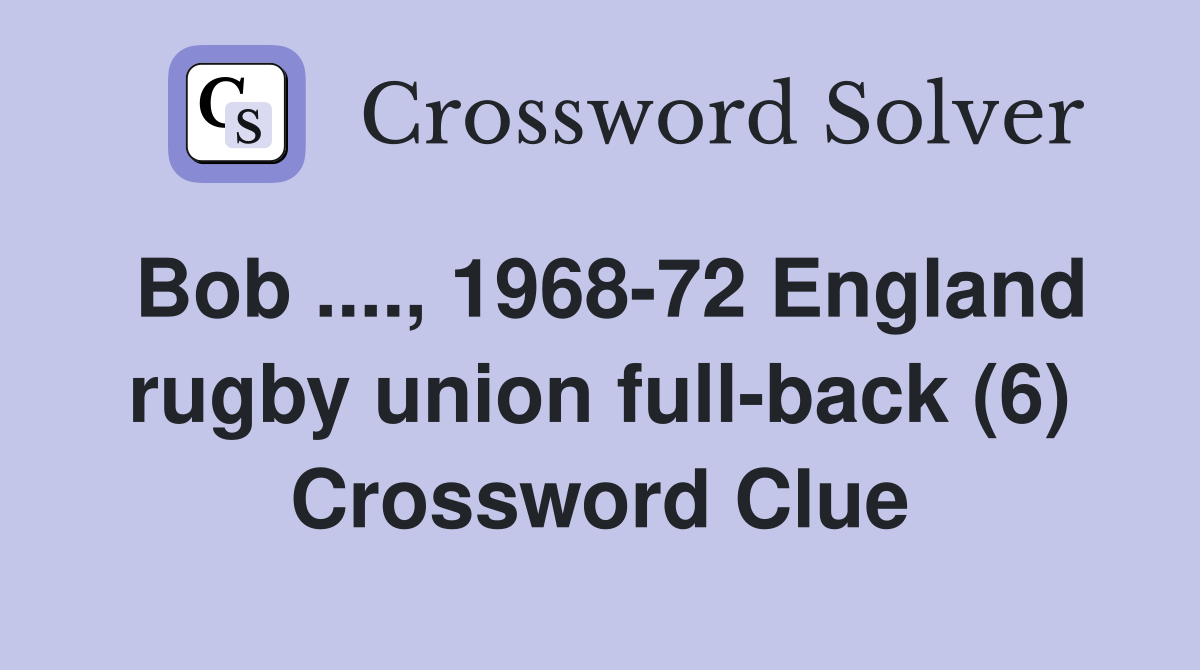 Bob 1968 72 England rugby union full back (6) Crossword Clue