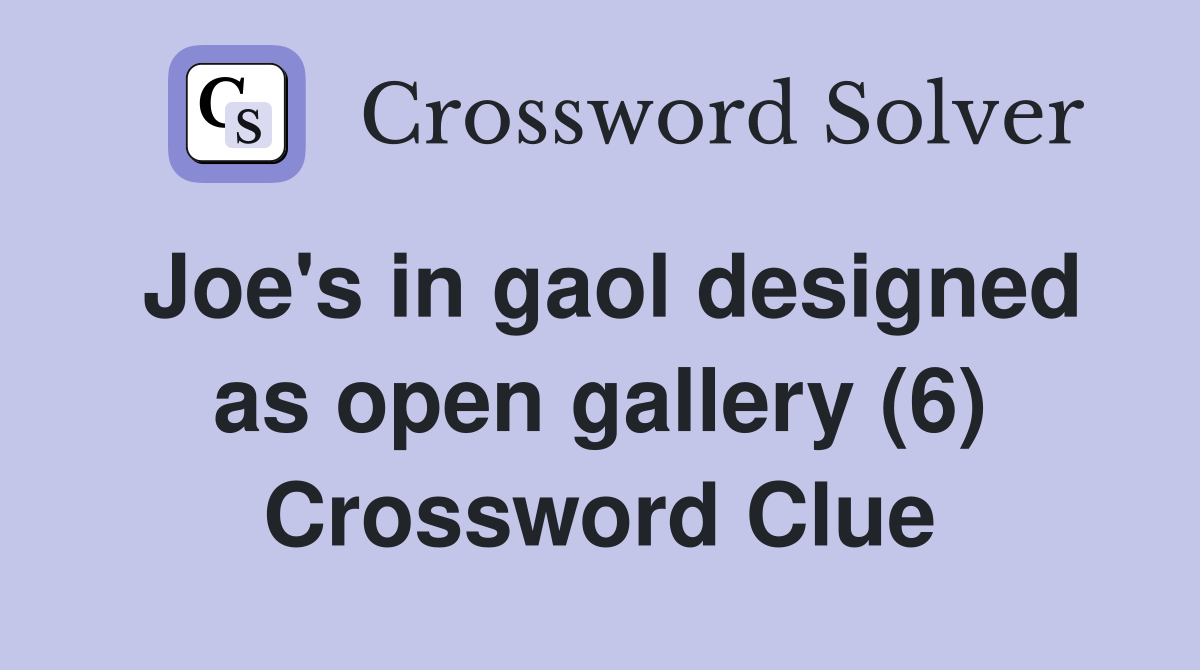 Joe #39 s in gaol designed as open gallery (6) Crossword Clue Answers