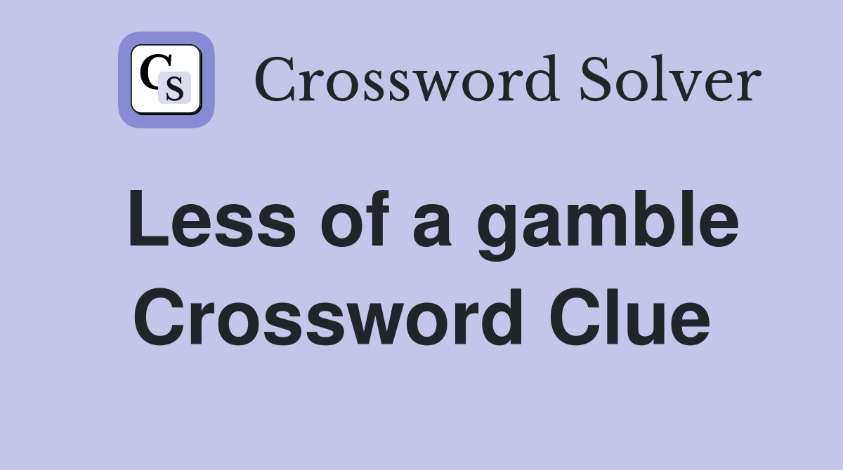 Less of a gamble Crossword Clue Answers Crossword Solver