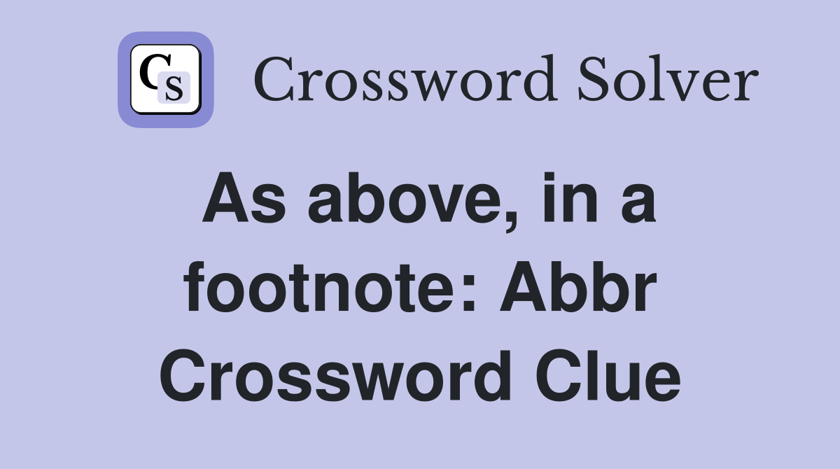 As above in a footnote: Abbr Crossword Clue Answers Crossword Solver