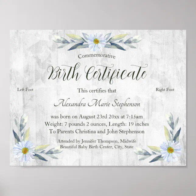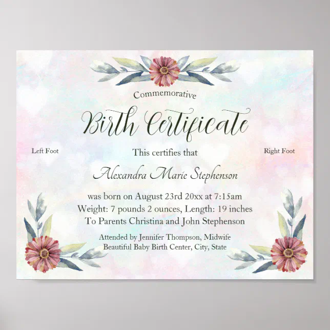 Commemorative New Baby Footprint Birth Certificate Poster Zazzle