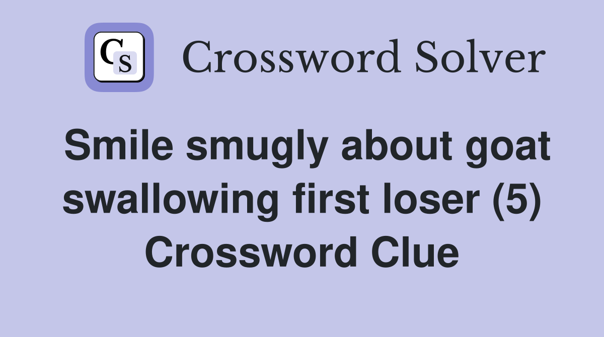 Smile smugly about goat swallowing first loser (5) Crossword Clue