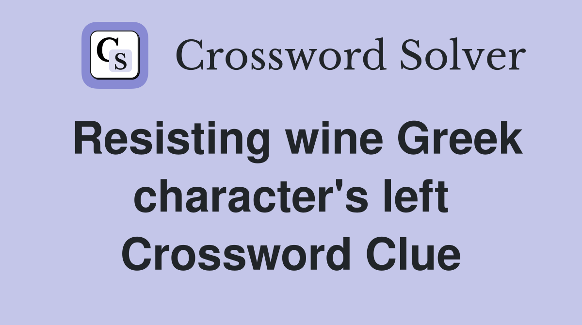 Resisting wine Greek character #39 s left Crossword Clue Answers