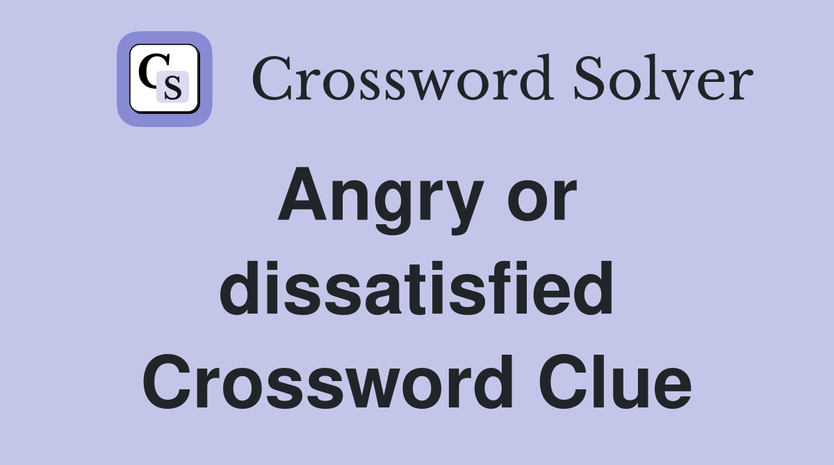 Angry or dissatisfied Crossword Clue Answers Crossword Solver