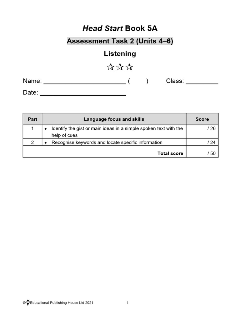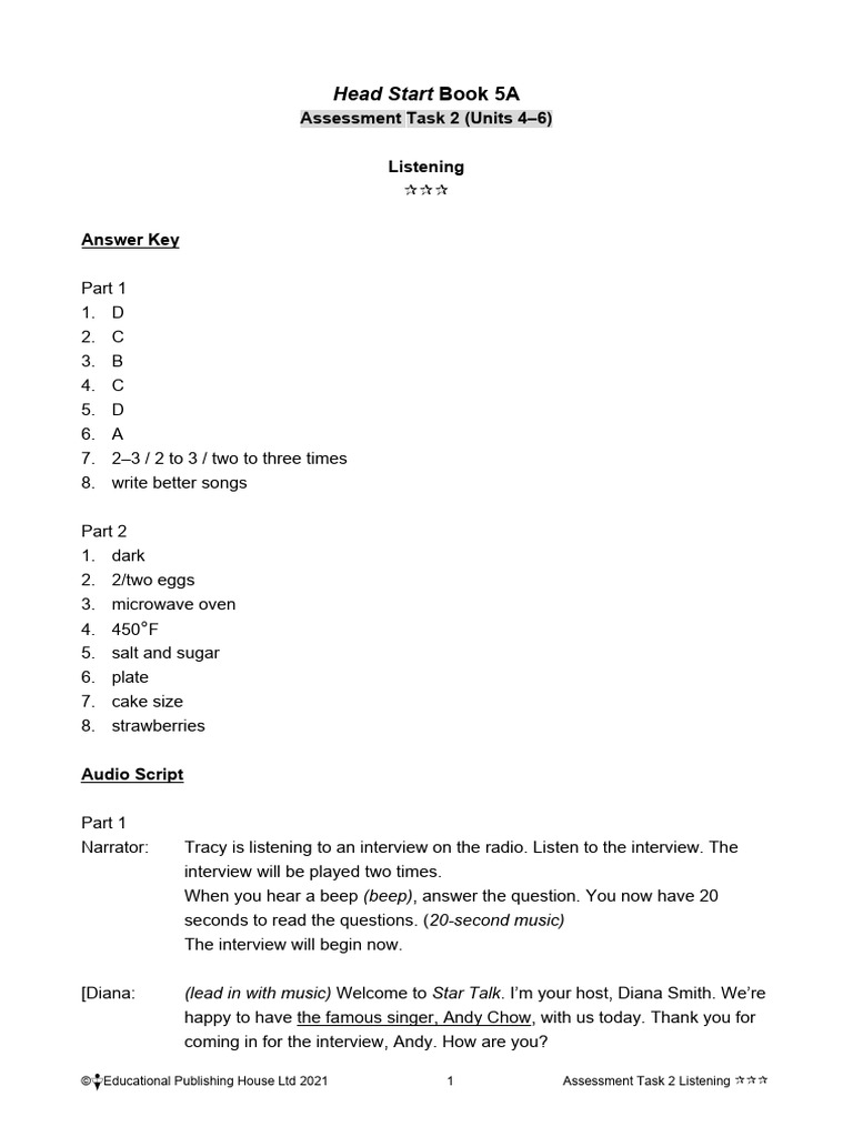 Head Start Book 5A: Assessment Task 2 (Units 4 6) Listening PDF