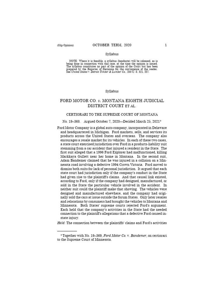 Ford Motor Co v Montana Eighth Judicial District Court: Course Hero