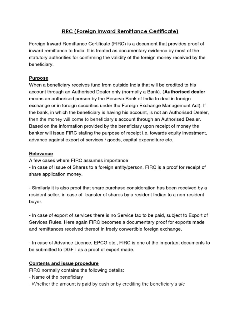 All About Foreign Inward Remittance Certificate (FIRC) Foreign