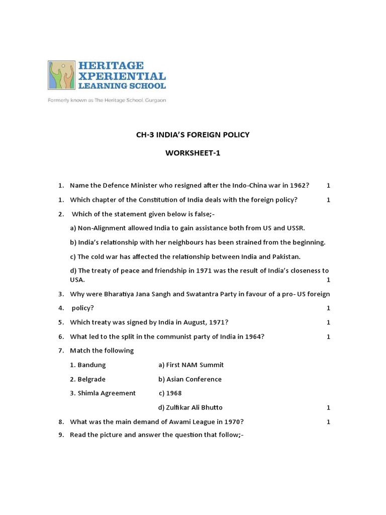 Ch 3 India #39 s Foreign Policy (Worksheet) PDF