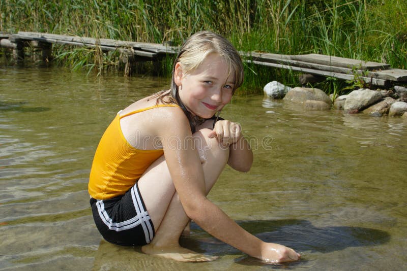 Girl in RedExit from River Stock Photo Image of girl beauty