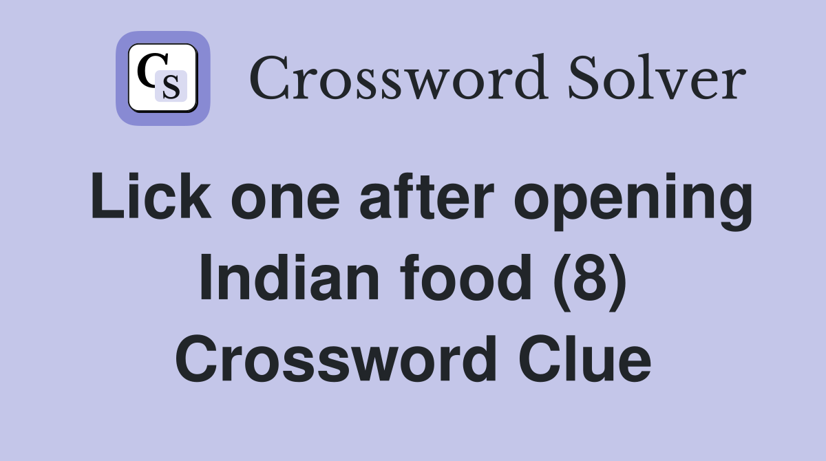 Lick one after opening Indian food (8) Crossword Clue Answers
