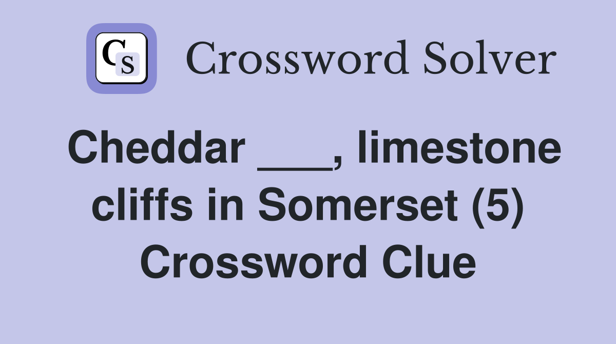Cheddar limestone cliffs in Somerset (5) Crossword Clue Answers