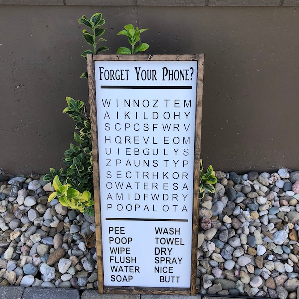 Forgot your phone bathroom sign crossword wood sign word Etsy