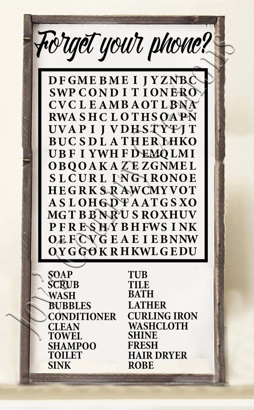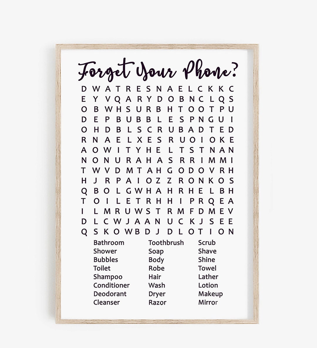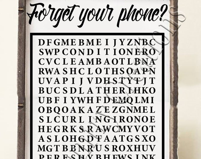 Forget Your Phone Word Search Funny Bathroom Decoration Etsy