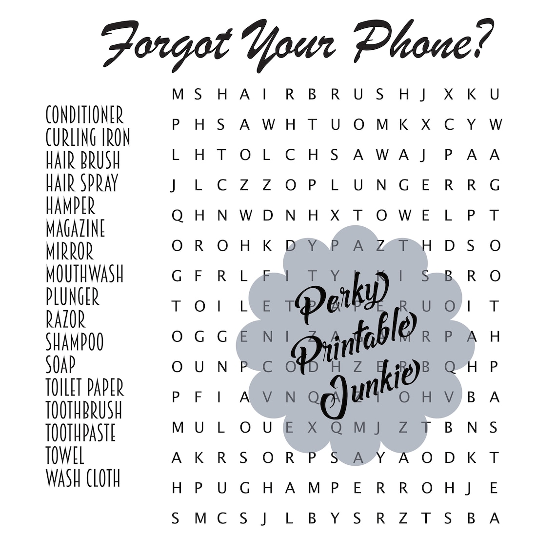 Forget Your Phone Bathroom Sign Printable Word Search • Forgot Your