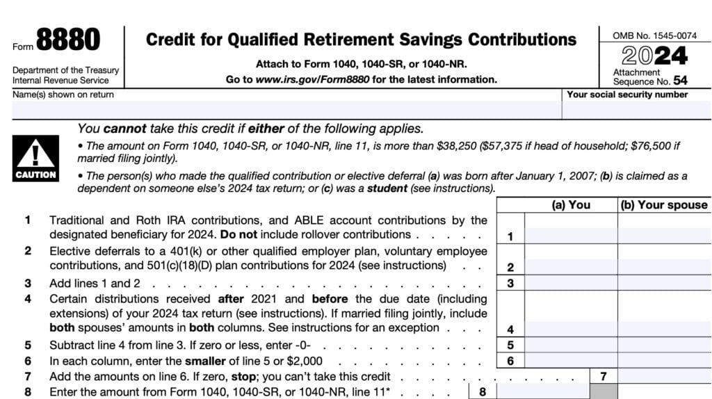 Form 8880: Credit for Qualified Retirement Savings Contributions