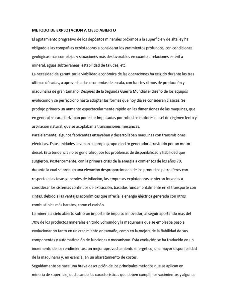 Metodo de Explotacion A Cielo Abierto PDF Minería Cantera