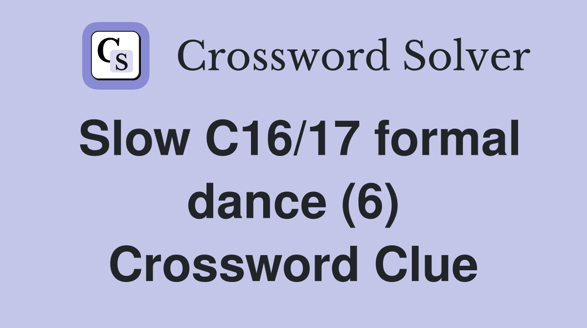 Slow C16/17 formal dance (6) Crossword Clue Answers Crossword Solver