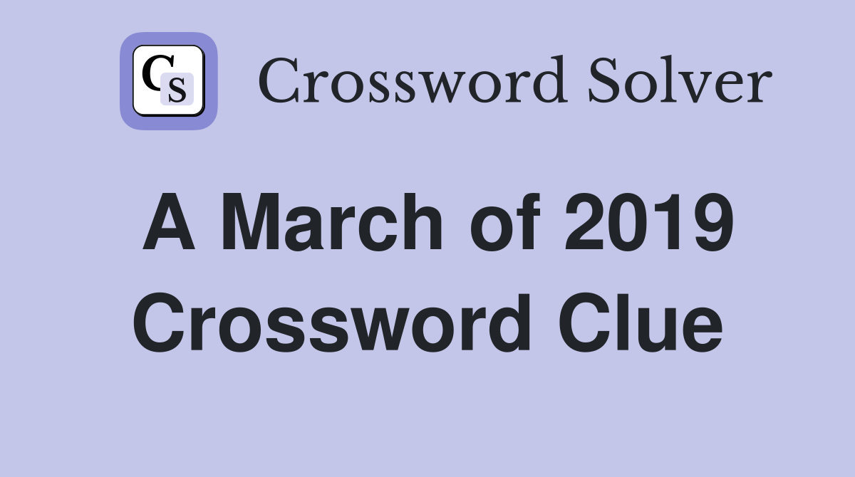 A March of 2019 Crossword Clue Answers Crossword Solver