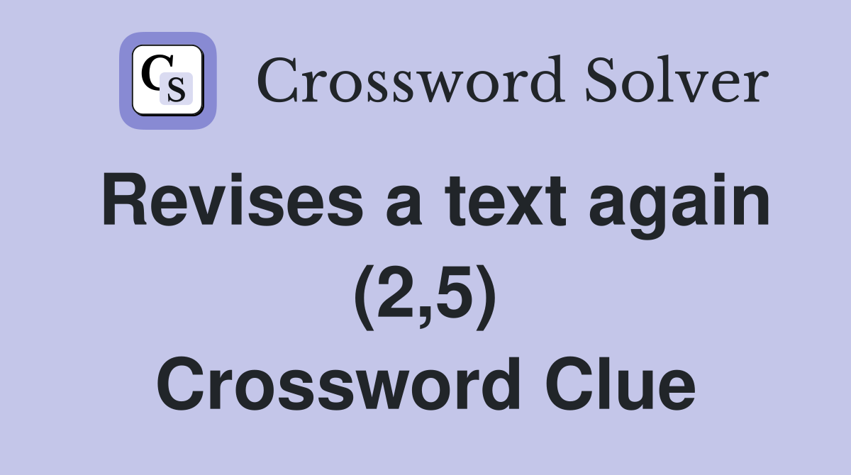 Revises a text again (2 5) Crossword Clue Answers Crossword Solver
