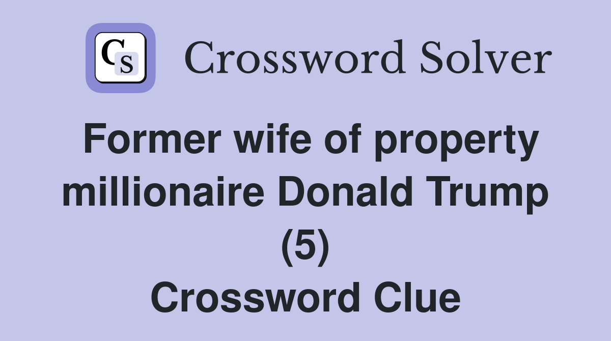 Former wife of property millionaire Donald Trump (5) Crossword Clue