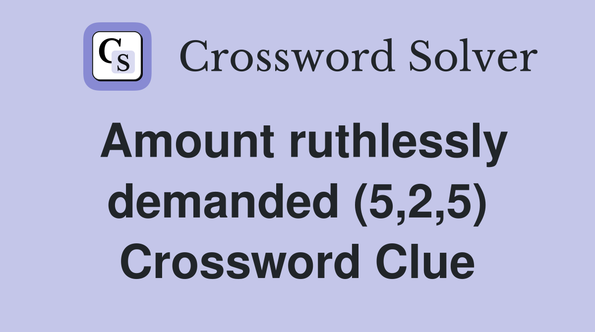 Amount ruthlessly demanded (5 2 5) Crossword Clue Answers Crossword