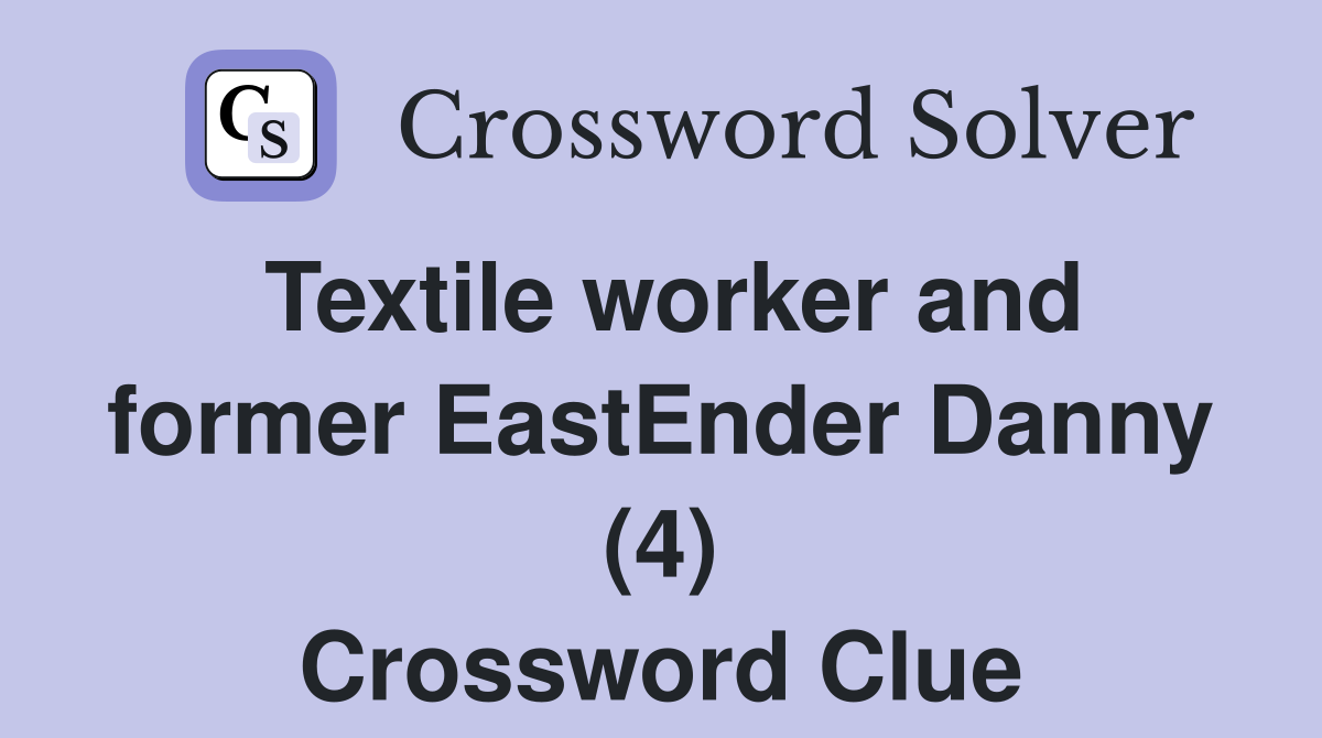 Textile worker and former EastEnder Danny (4) Crossword Clue Answers