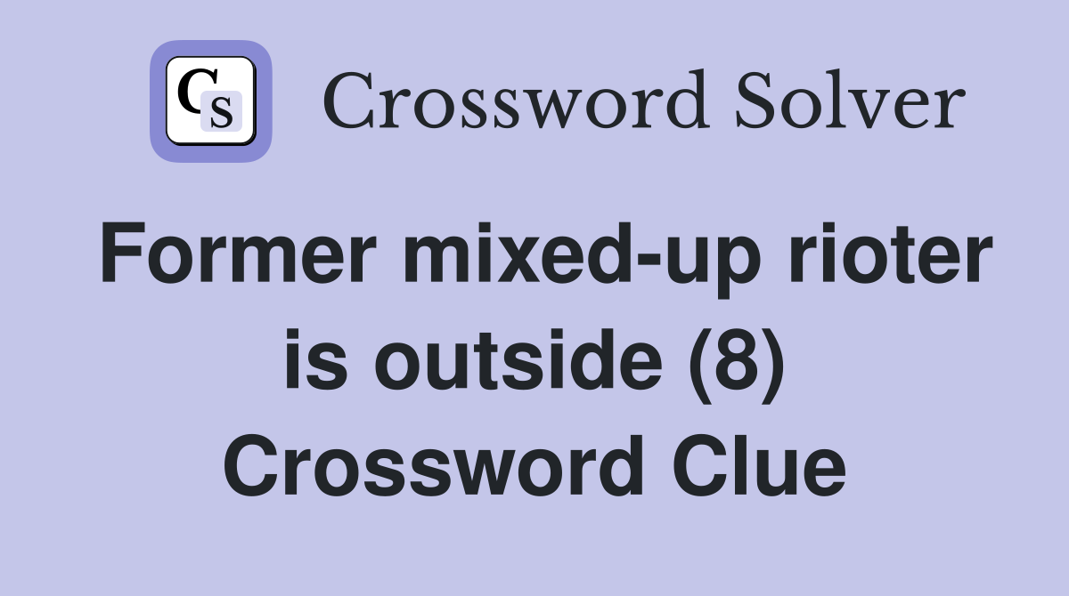 Former mixed up rioter is outside (8) Crossword Clue Answers