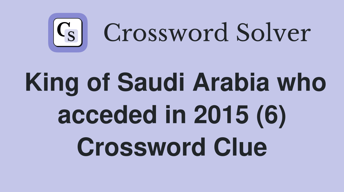 King of Saudi Arabia who acceded in 2015 (6) Crossword Clue Answers