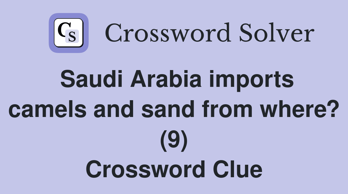 Saudi Arabia imports camels and sand from where? (9) Crossword Clue