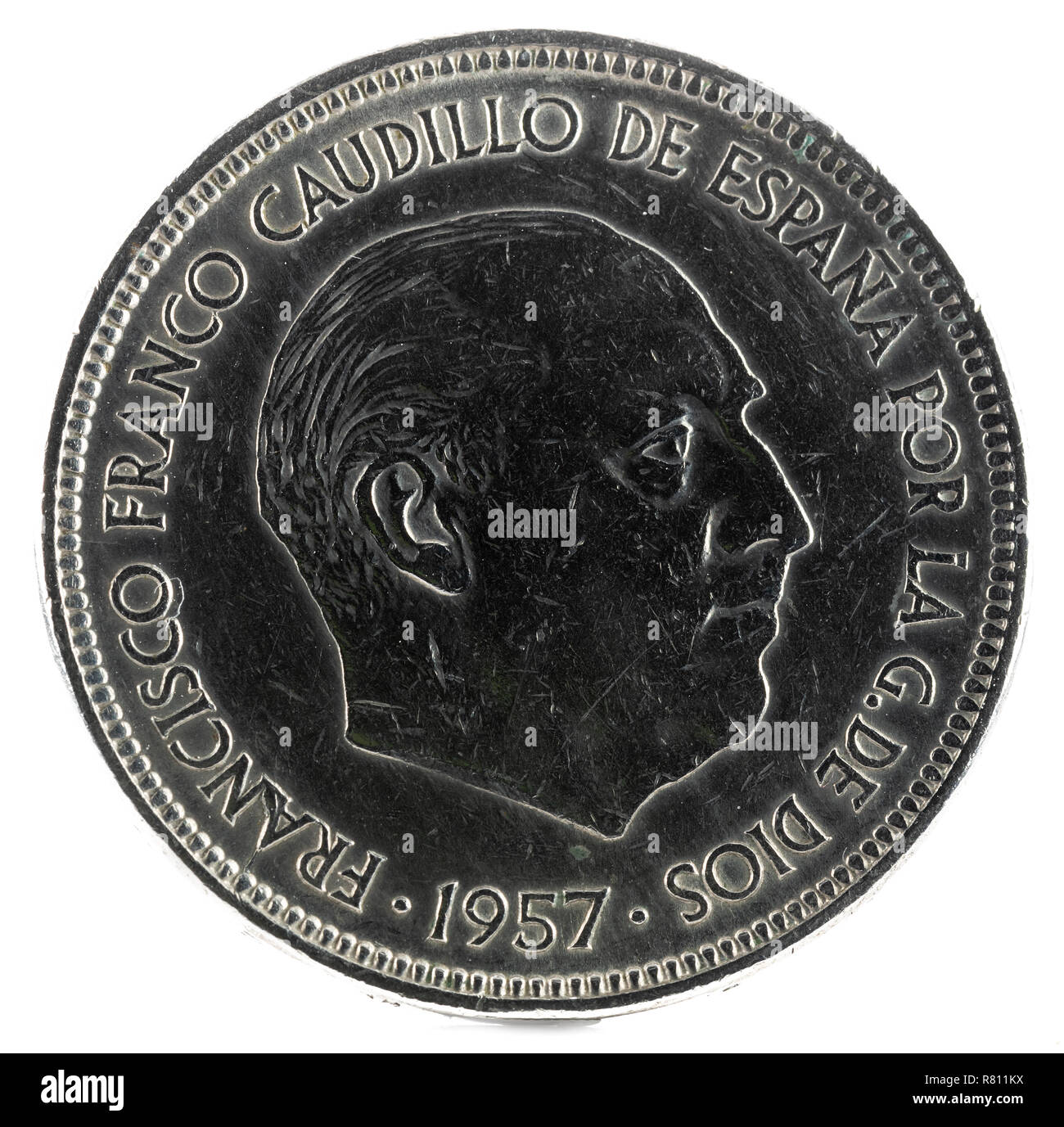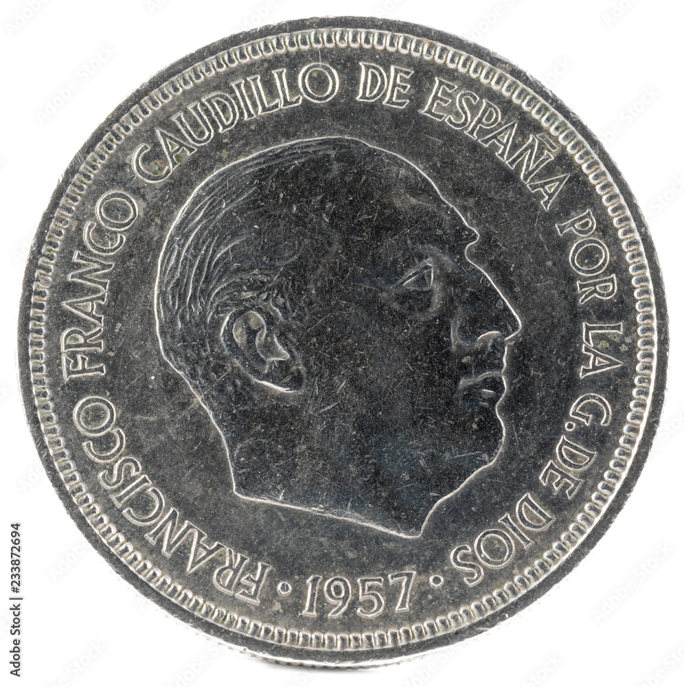 Old Spanish coin of 5 pesetas Francisco Franco Year 1957 72 in the