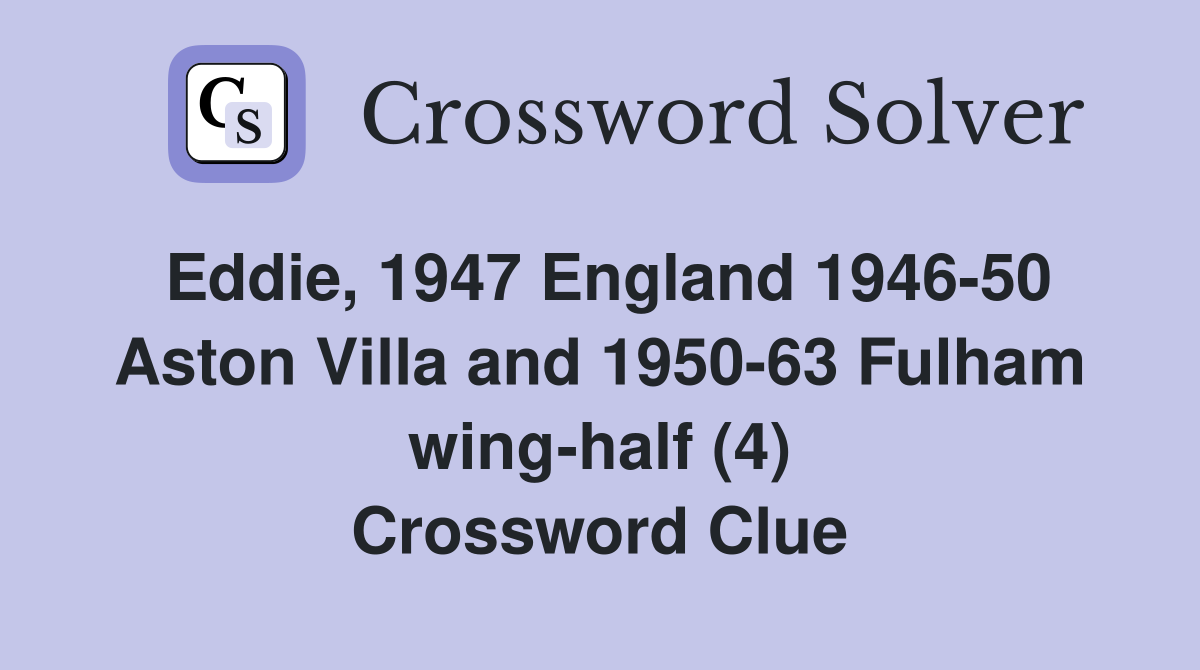 Eddie 1947 England 1946 50 Aston Villa and 1950 63 Fulham wing half (4