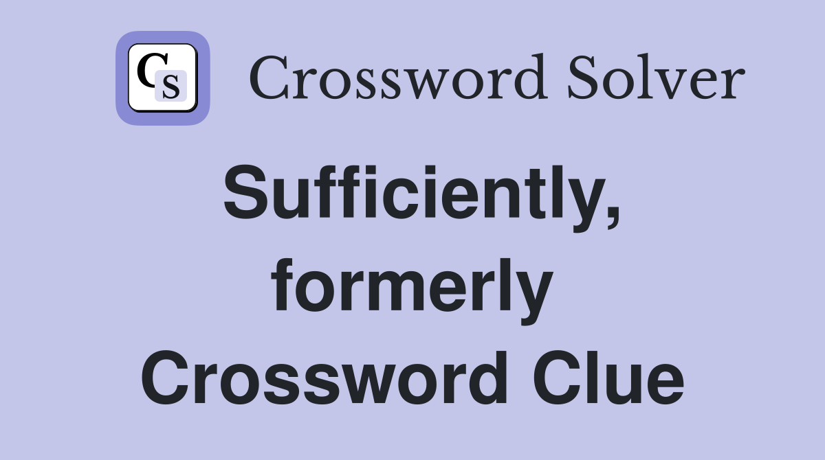 Sufficiently formerly Crossword Clue Answers Crossword Solver
