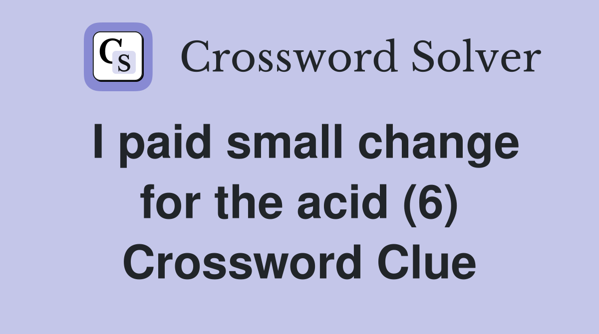 Drug also called acid: Abbr Crossword Clue Answers Crossword Solver