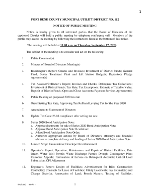Fillable Online FORT BEND COUNTY MUNICIPAL UTILITY DISTRICT NO 152