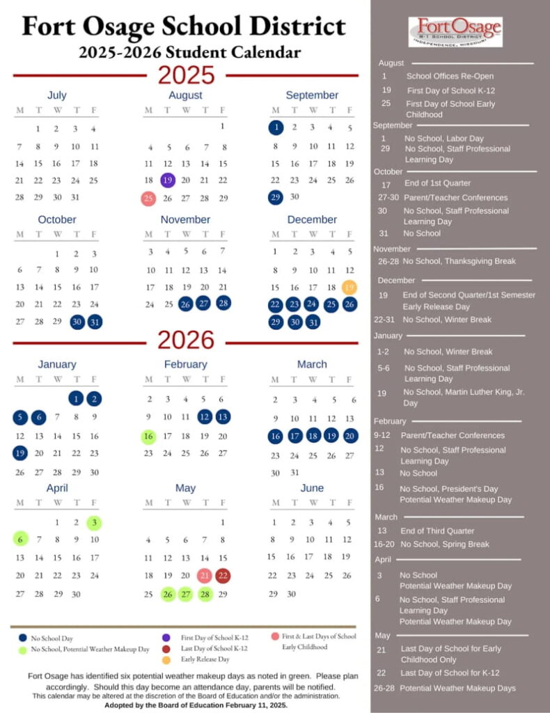 Fort Osage MO School District Calendar 25 26 Revised PDF EduCounty