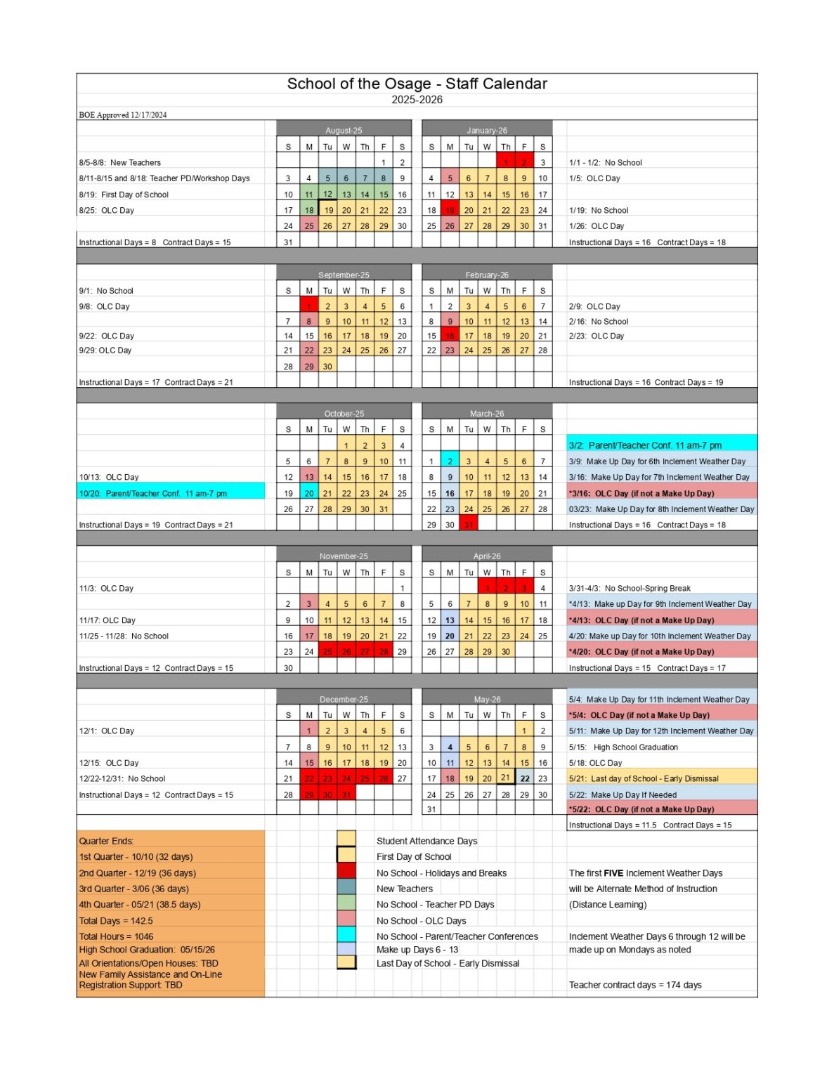 School of the Osage Calendar 25 26 Revised PDF EduCounty