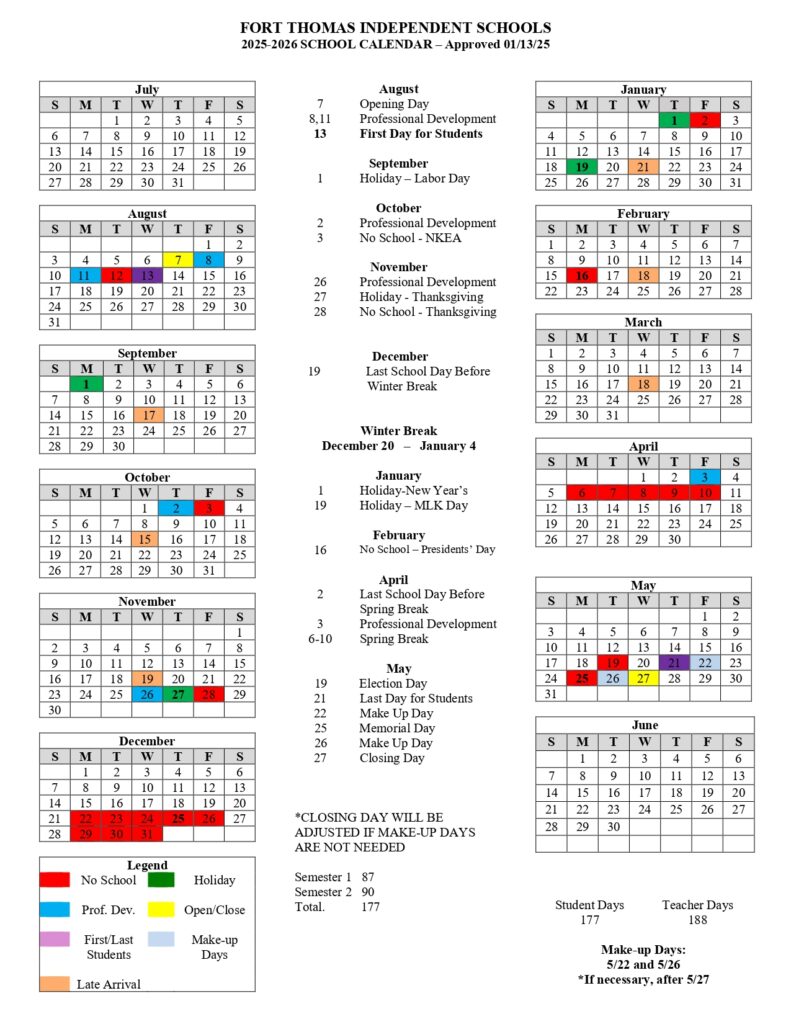 FTIS District Calendar for 2025 2026 School Year Fort Thomas