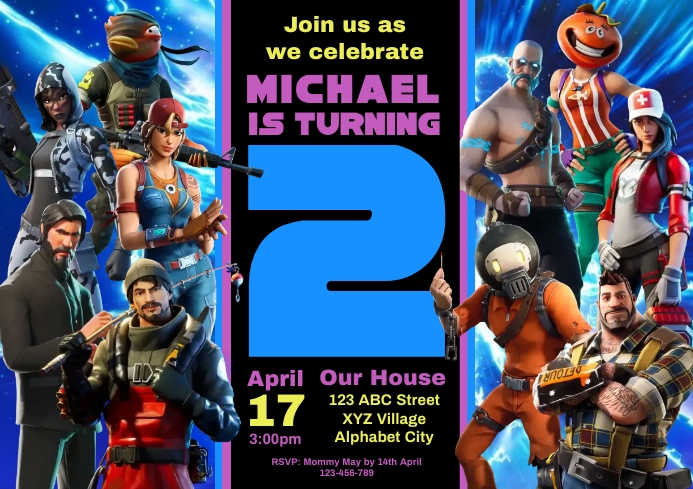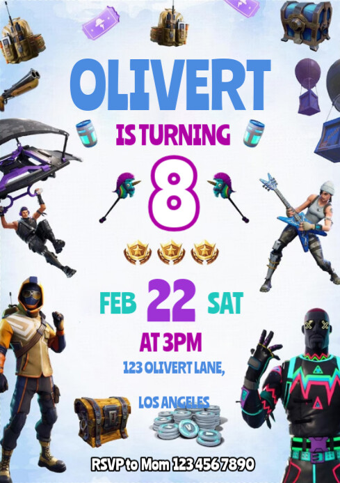 Plantilla de Invitación de Cumpleaños Fortnite PosterMyWall