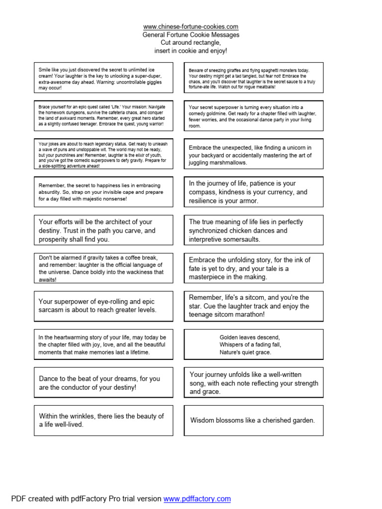 Printable Fortune Cookie Fortunes Printable AT A GLANCE