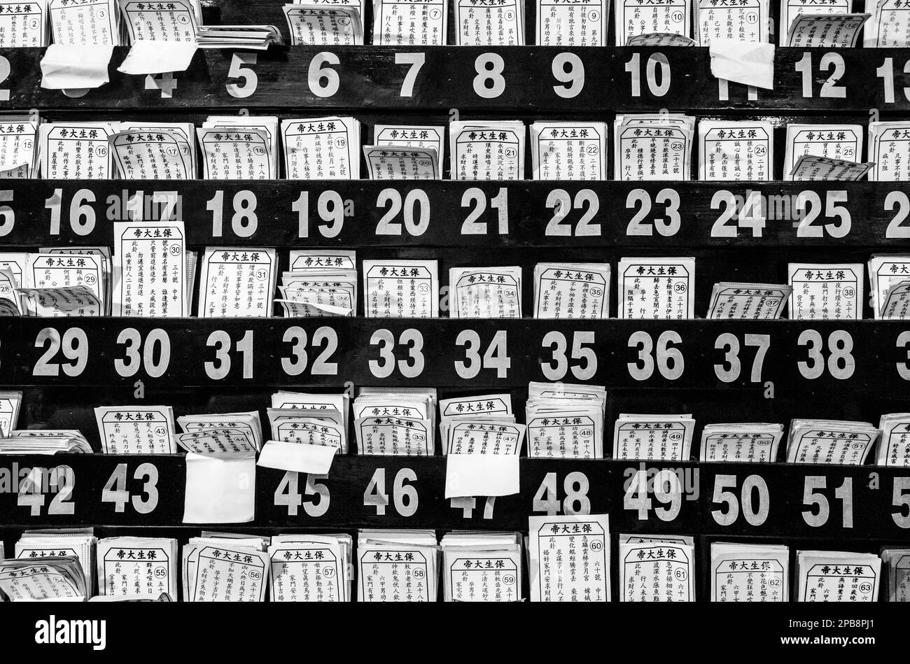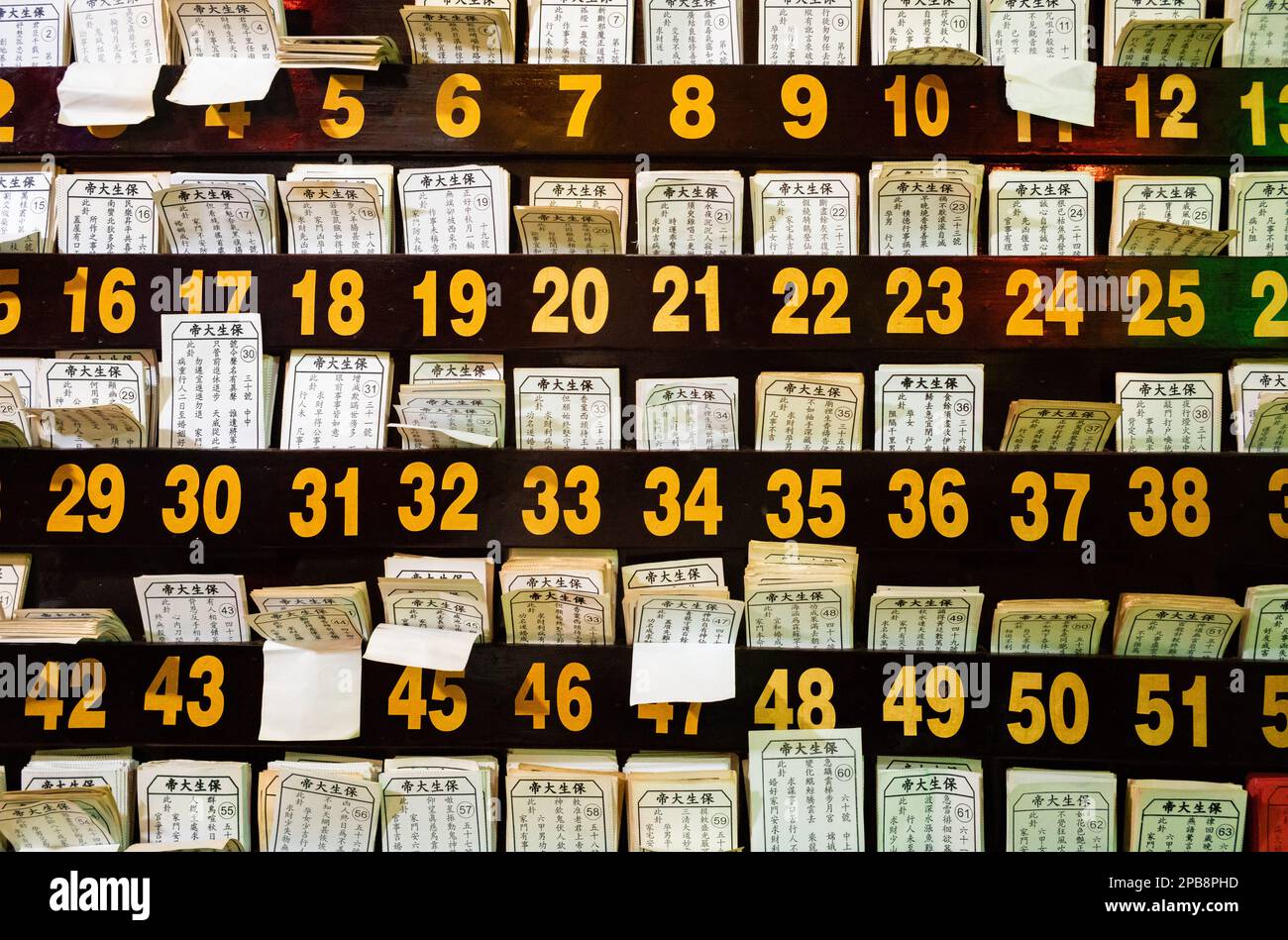 Fortune teller #39 s cards in a rack at a Taoist Temple in Tan Chau the