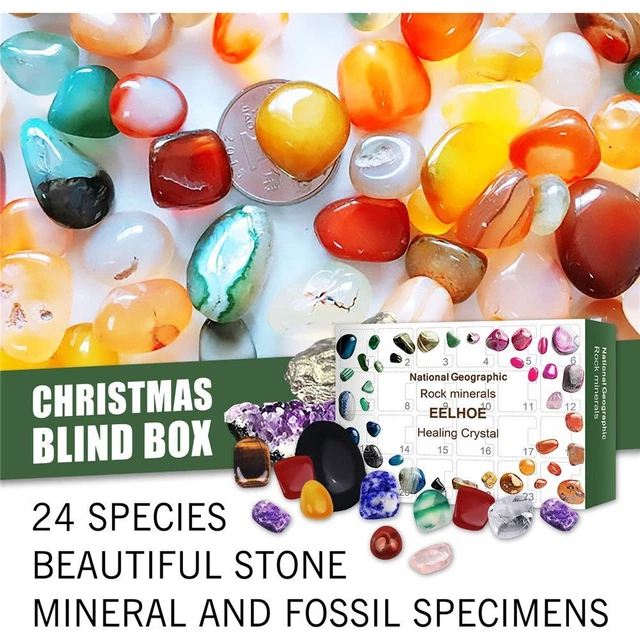 Gift Box Crystal Stone Advent Calendar Countdown Toy Rock Mineral