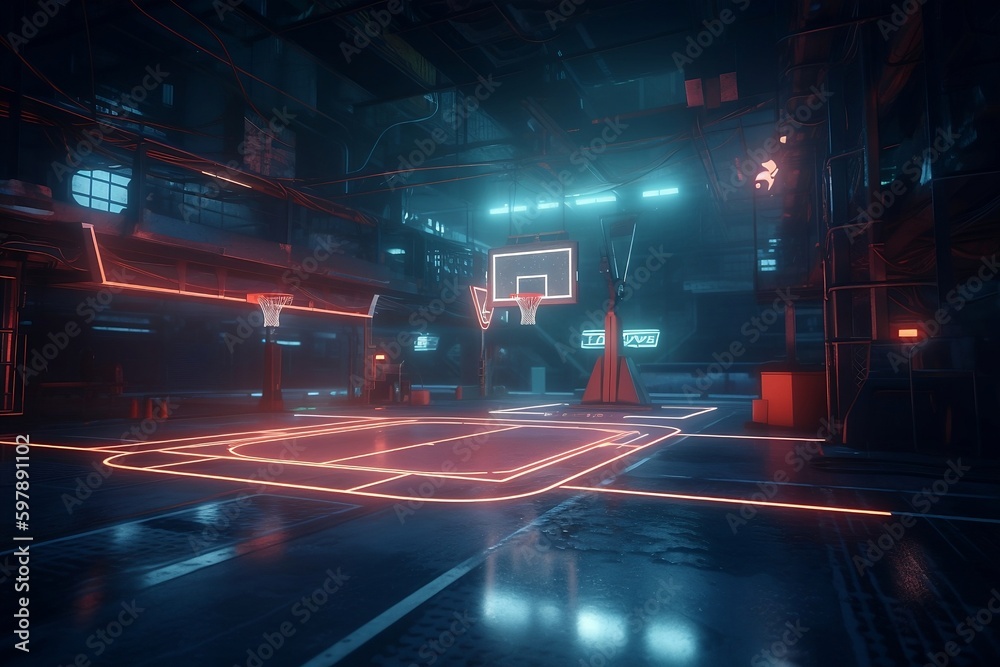 Ilustración de Stock Cyberpunk Basketball Court Futuristic Basketball
