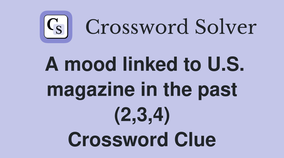 A mood linked to U S magazine in the past (2 3 4) Crossword Clue