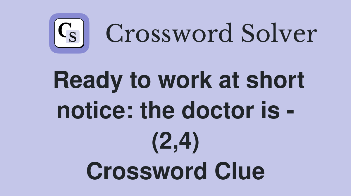 Ready to work at short notice: the doctor is (2 4) Crossword Clue