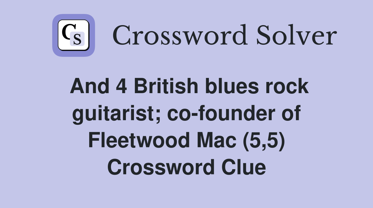 And 4 British blues rock guitarist co founder of Fleetwood Mac (5 5